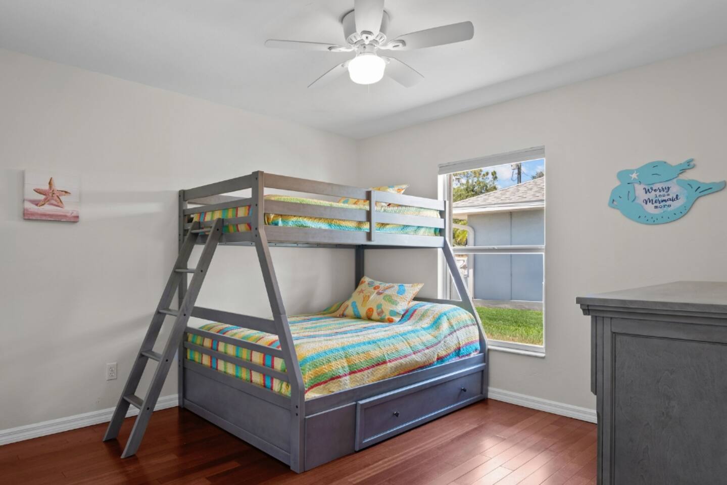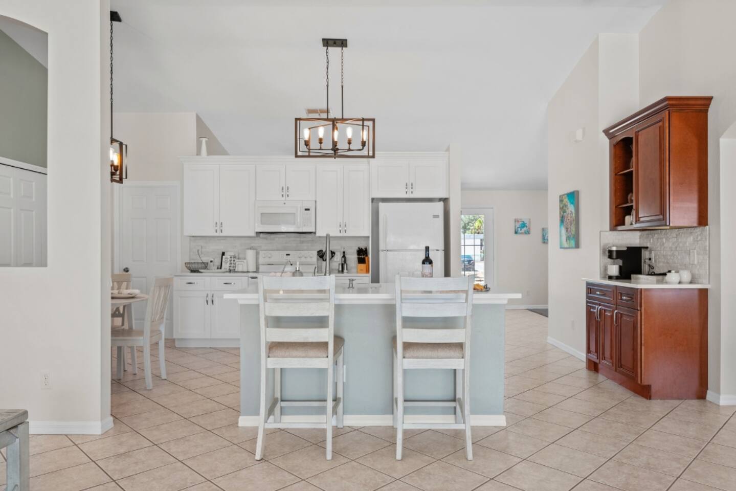 โ๏ธ Sleeps 6 | 3 Bedrooms | 2 Bathrooms | 1 Level Bedrooms: ๐ Master: King bed + en-suite bathroom ๐ Guest Room 1: Queen bed ๐ Guest Room 2: Bunk bed (Full bottom, Twin top) โ kid-approved! Bathrooms: ๐ฟ Bathroom 1: Walk-in shower (ensuite) ๐ Bathroom 2: Tub/shower combo (hallway access) Living & Dining: Two separate living areas with Smart HDTVs Dining table for 4 + kitchen bar seating for 2 Semi-private office nook with desk + chairs Abundant natural light & cozy, coastal decor Kitchen: Fully equipped with cookware, utensils, dinnerware Stainless steel appliances Keurig coffee maker & toaster Outdoor Lanai & Pool: Screened-in patio with private pool Gas grill + outdoor dining for 4 Pool toys & floats provided 2 adult bikes for local exploration ๐ Where Youโll Be โ Cape Coral, FL Conveniently located near the best of Southwest Florida: ๐ 7 min to Four Freedoms Public Beach ๐ฟ 13 min to Jaycee Waterfront Park ๐ค 10 min to Cape Coral Boat Rentals ๐ฌ 16 min to Four Mile Cove Ecological Preserve ๐ฆ 15 min to Rotary Parkโs Butterfly House ๐ข 20 min to Sun Splash Family Waterpark ๐ด 35 min to Fort Myers Beach & Sanibel Island Cape Coral offers over 400 miles of navigable waterways and more than 1,500 acres of public parks, perfect for outdoor enthusiasts and families alike.